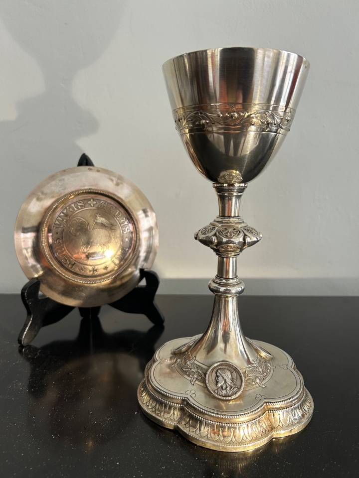 - objets religieux, calices, ciboires, ostensoirs, bougeoirs, encensoirs, baisers de paix, croix, reliquaires, reliques, vierges, saints, chapelets, médailles et autres.